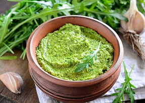 Server with choice of pasta, on baked potatoes, bread or as pizza spread